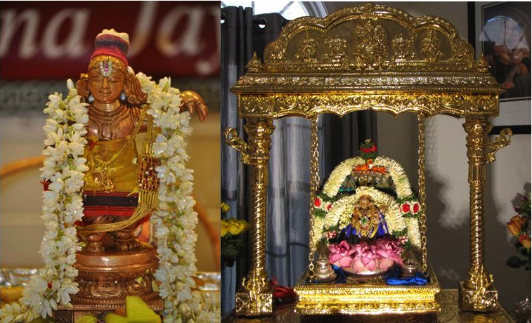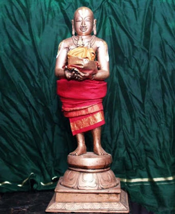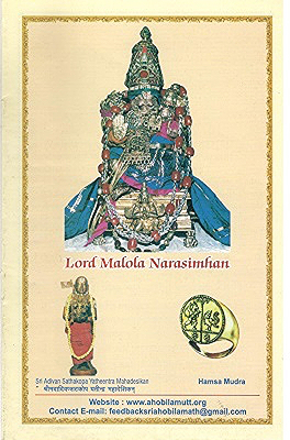 Then, one of the nine Nrisimhas of Ahobilam called Malolan jumped into the hands of Athivan Satakopan (see picture on the right) and ordered him to travel the length and breadth of the country. Thus began the institution called Sri Ahobila Matam and the travels of Lord Malolan to village after village so that devotees get a chance to undertake Pancha Samskaram and perform Bhara Nyasam at the lotus feet of the Lord.
